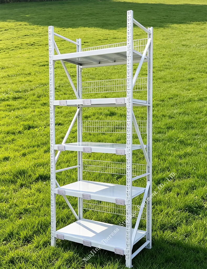 中量c型货架是由立柱与横斜撑组装形成中型货架柱片,柱片再与货架横梁及层板组装而成。